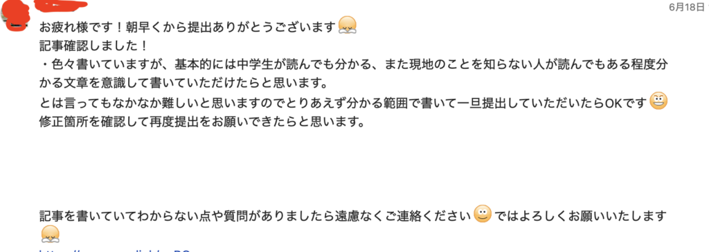 ライターさんも非常に丁寧にやりとりしてくださり、もう少し砕けた感じでもいいのかな?と思ったりもしましたが。