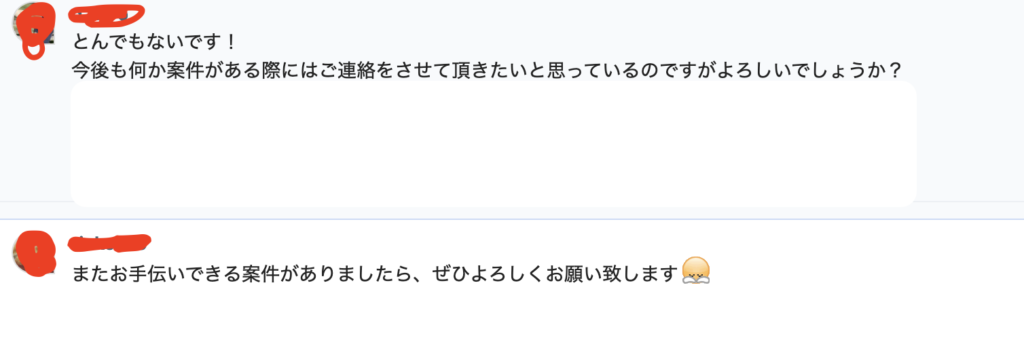 作業完了後にはライターさん2人とも、また何か案件があればぜひとおっしゃってくれました。