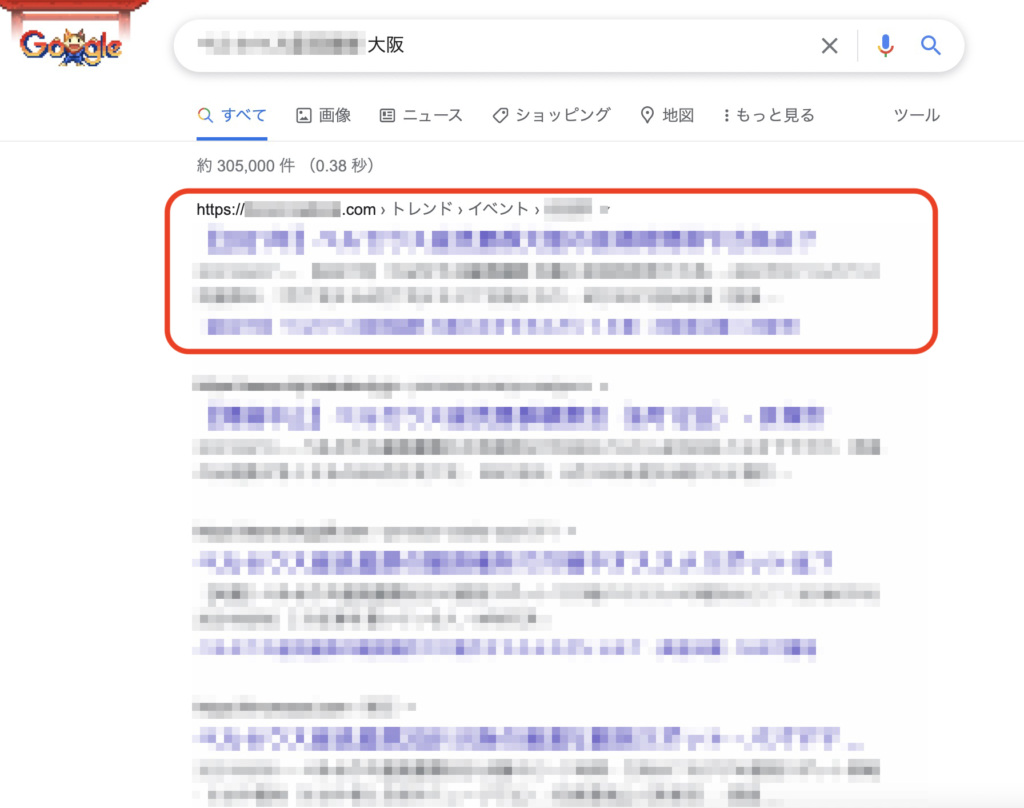 その中で今回の肝とも言えるイベント名+地方ごとのKWでかなりの数を検索上位に表示させることに成功しました。