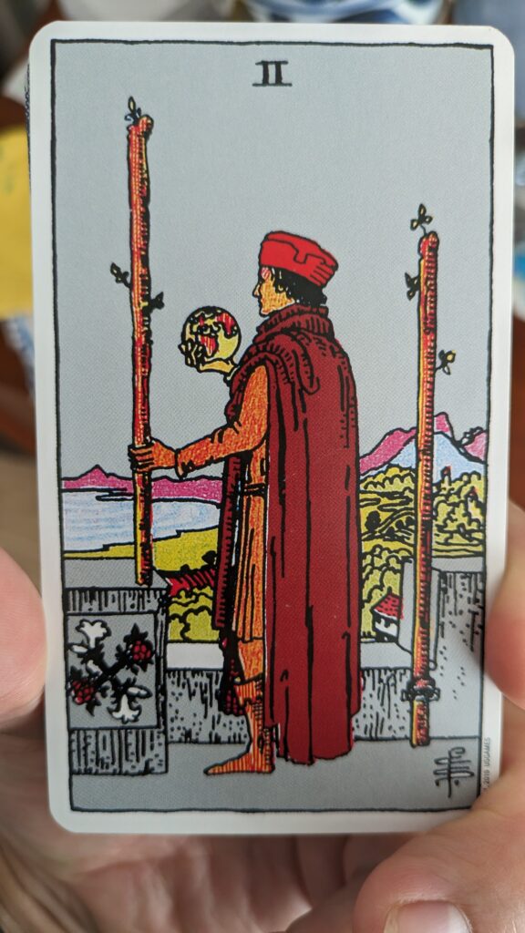 ワンドの2正位置は、計画と展望、選択と決断の重要性を示しています。